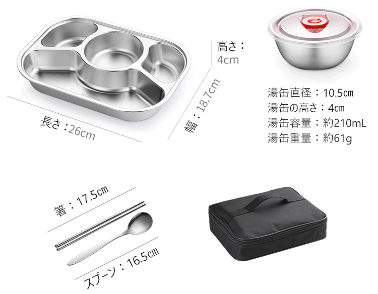 ステンレス鋼製仕切りランチボックス