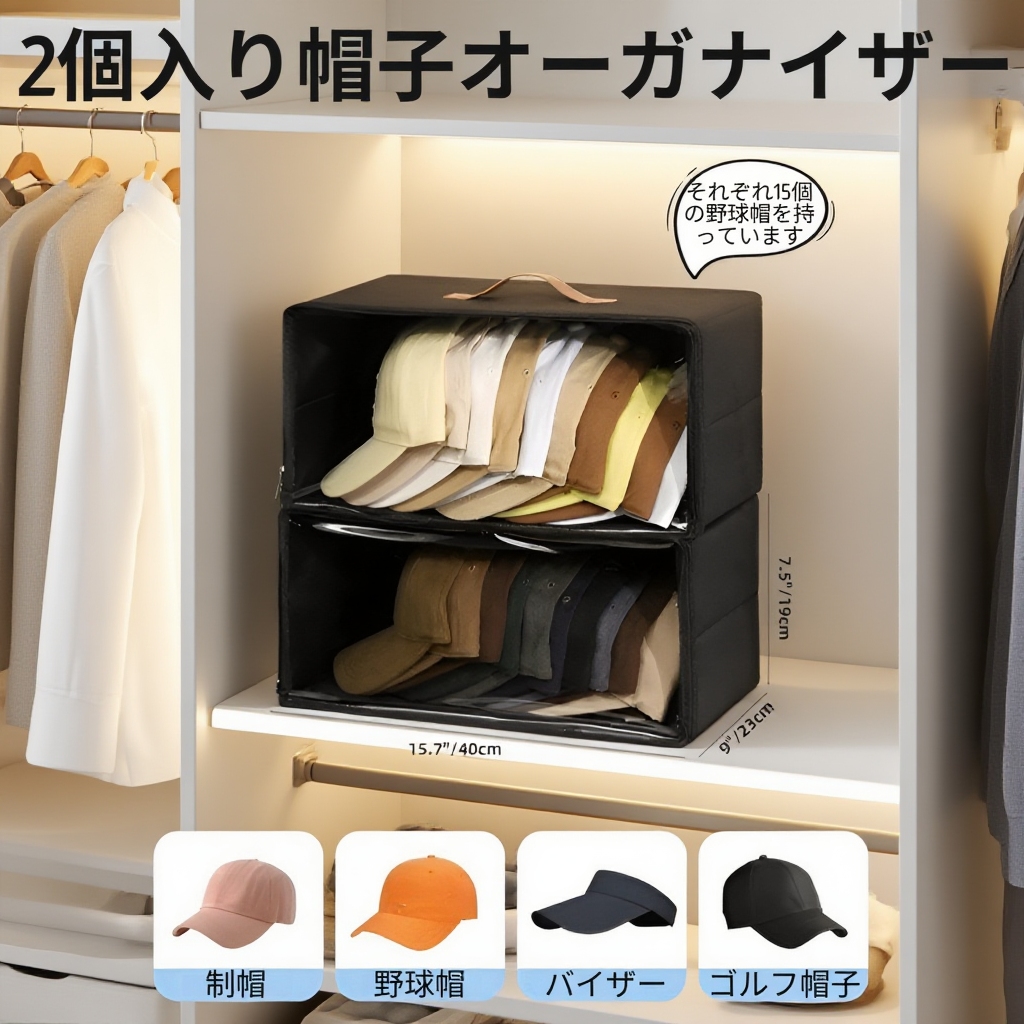 不織布野球帽収納ボックス雑貨収納整理ジッパー帽子ボックス布収納ボックス